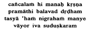 the restraint I deem quite as difficult as that of the wind.Krishna is derived