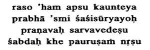moon and the sun ; I am the Pranava, the syllable Om in all the Vedas:in