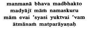 Me as thy Supreme Goal, thou shalt reach Myself, the Self. Me: Vasudeva